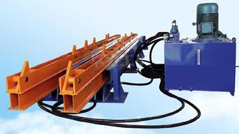 本實用新型提供了一種液壓驅動,安裝利便,堅固耐用,使用利便,運行平穩(wěn),沖擊力小的液壓板鏈式爬車機,包括傳動裝置、導向輪裝置、尾輪裝置及與這三裝置鏈輪嚙合的板鏈、板鏈上安裝的爬車爪、橫梁及支承在橫梁上的鋼軌、上導軌、護軌、連接橫梁和下導軌的角鋼、焊接在橫梁上的上護欄和下護欄、安裝在鋼軌和護軌之間的逆止爪,還設有液壓泵站,液壓泵站用液壓膠管與傳動裝置上的徑向柱塞液壓馬達連接,徑向柱塞液壓馬達通過柱銷聯(lián)軸器與傳動裝置上的軸聯(lián)接。本實用新型結構緊湊、公道、控制簡便,是理想的礦山軌道運輸中補償?shù)V車運行線路高差的運輸設備。