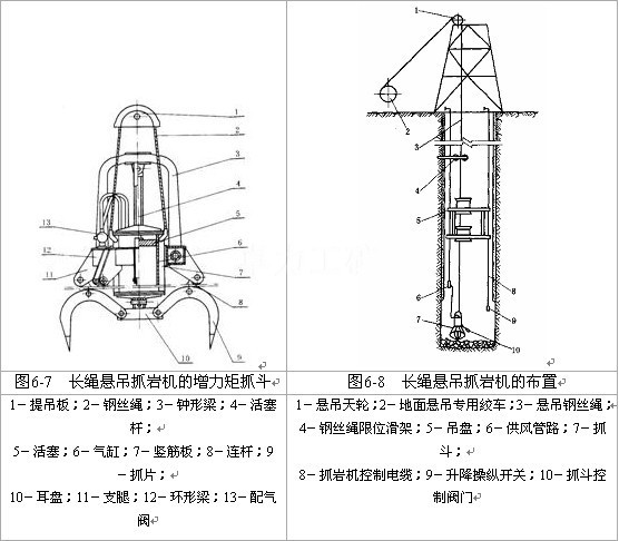 為了安全,地面可增設鑿井絞車,以便對抓巖機進行輔助懸吊,通??膳c傘鉆適用一臺懸吊絞車。
