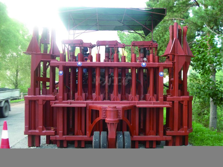 一種新型的路面破碎機,一種帶兩個碎路錘、兩條起重傳動鏈及兩個碎路錘掛卡裝置的路面破碎機。一般的路面破碎機只有一個碎路錘,起重傳動鏈提升碎路錘后,碎路錘即下落砸擊路面,而起重傳動鏈還需空轉半周才能再次提升碎路錘,造成了時間的浪費和機器空轉時燃料的浪費,效率不高;而且,路面破碎機在挪地方時,要人工提起碎路錘后再移動機器,操作很不方便。雙錘路面破碎機通過兩條起重傳動鏈交替提升兩個碎路錘,充分利用了整個起重傳動鏈轉動周期,兩條起重傳動鏈一先一后每周期共可兩次提升碎路錘;此外,碎路錘掛卡裝置可以方便地將碎路錘掛起來,避免了在移動破碎機時人工將碎路錘提起的麻煩。因此,其綜合效率提高了兩倍以上。