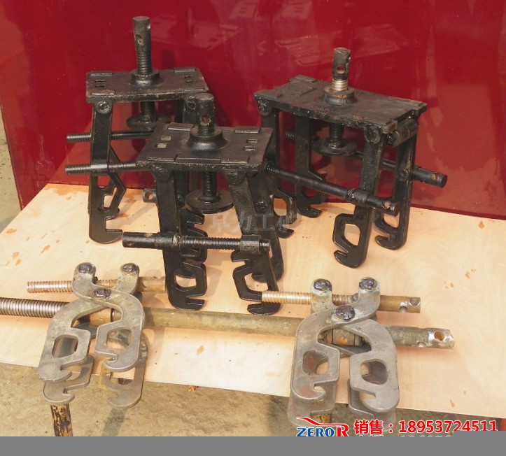在井下條件復(fù)雜,頂板活動(dòng)頻繁的情況下,一直延續(xù)使用著傘型臨時(shí)支護(hù),在長(zhǎng)期使用過程中,發(fā)現(xiàn)傘形臨時(shí)支護(hù)弧度與施工巷道的弧度格格不入,傘形支護(hù)的受力點(diǎn)只局限于弧度中心點(diǎn),支撐點(diǎn)也只局限于一個(gè)螺旋柱桿,另外其體積大,分量重,既不便于搬動(dòng),又不便于置放工作區(qū)域,很大程度上影響了工作中的平行作業(yè)和交叉作業(yè),在安全上造成了較大隱患。為此,該隊(duì)結(jié)合實(shí)際情況,集思廣益,積極改進(jìn)支護(hù)方式。他們利用圓鋼、厚鋼板、螺絲桿、螺帽等材料自行設(shè)計(jì)了一組前探梁卡子,可以直接固定在錨桿上,并配合3寸鋼管穿插到前探梁卡子中間,轉(zhuǎn)動(dòng)頂絲桿把手,緊緊卡死鋼管,然后再延伸到前頭的鋼管上鋪設(shè)1米左右的方格金屬網(wǎng)并使其緊貼巖壁。
