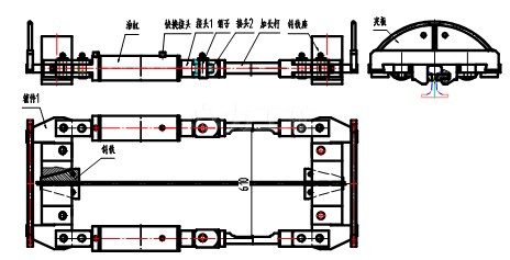 該設備適用于50kg/m及60kg/m型號鋼軌無縫線路應力放散和長軌鋪設,更換斜鐵座,可適用于75kg/m鋼軌線路?,F(xiàn)場施工時,在低于鎖定軌溫的一定范圍內(nèi),用該設備把處于零應力狀態(tài)的鋼軌,強行拉伸到鎖定軌溫時的長度,進行重新鎖定。與同類產(chǎn)品相比,該設備具有構(gòu)思獨特,機體輕便,操作簡易,拉軌力大,不傷害軌頭工作面等特點。二、主要技術參數(shù)1、最高額定工作壓力 57Mpa2、最大拉軌力 2×450kN3、工作油缸最大行程 ≥760mm4、兩拉桿中心距 360mm寬體610mm5、鎖定方式 斜鐵夾緊軌腰6、油泵電機功率 3kW電壓 380V流量 ≥3L/min7、機組質(zhì)量 ≤370kg8、電動泵站質(zhì)量 85kg(不包括油管)三、基本結(jié)構(gòu)與工作原理