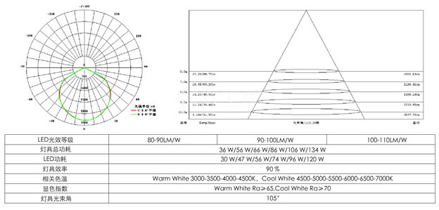 高光效進口LED芯片,專利技術(shù)集成封裝,LED光效最高可達到120LM/W。