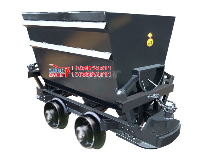 翻斗式礦車特點(diǎn):輪軸采用了滾柱軸承,有效地減少了運(yùn)行阻力,因此用機(jī)車或人力均能牽引或推動(dòng)。