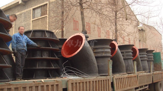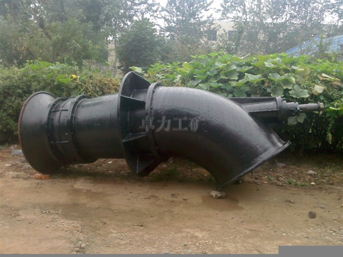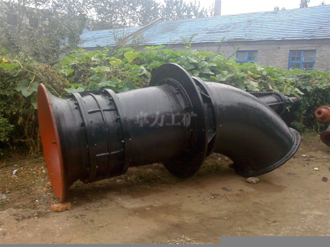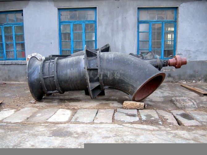 結構特點: ZLB、ZLQ型泵系單級立式軸流泵。其結構分為泵體部分和傳動部分。泵體部件有喇叭管、葉輪部件、導葉體、彎管、軸承、填料函和聯(lián)軸器等。傳動部分有傳動軸的一端通過聯(lián)軸器與電動機連接,另一端與水泵連接。泵的軸向力由電動機座(或軸承座)內裝的軸承來承受。軸封采用填料密封。傳動中水泵葉輪的轉向,朝吸入口看,為逆時針方向。